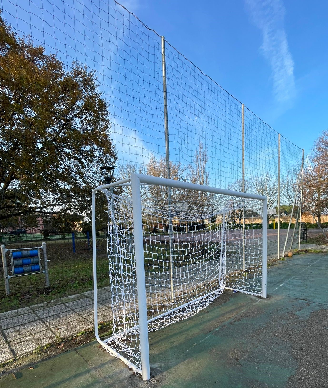 A San Pancrazio sono stati completati i lavori per la sostituzione della recinzione perimetrale e delle reti delle porte nella piastra polivalente presso l’area verde Silvestroni in Via XVII Novembre (nella foto). La rete preesistente è stata sostituita con un’altra con caratteristiche di tenuta all'urto superiori.